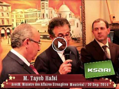 Petit discours de M. Tayeb Hafsi lors de la visite de M. Ramtane LAMAMRA, Ministre Algérien des Affaires étrangères qui a rencontré des représentants d'associations, les medias que quelques professionnels. La rencontre a eu lieu à la résidence de M. le consul general le mardi 30 septembre 2014